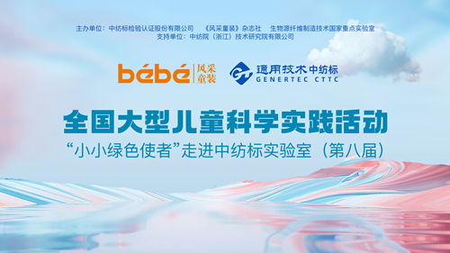 第八屆“小小綠色使者”活動由通用技術(shù)中紡院中紡標(biāo)檢驗認證股份有限公司(以下簡稱“中紡標(biāo)”)、《風(fēng)采童裝》雜志、生物源纖維制造技術(shù)國家重點實驗室主辦,由中紡院(浙江)技術(shù)研究院有限公司、深圳市世凡服飾有限公司特別支持。中紡標(biāo)作為紡織服裝檢驗檢測行業(yè)的權(quán)威技術(shù)機構(gòu),被中國紡織工程學(xué)會授予“科普教育基地”,始終踐行央企擔(dān)當(dāng),履行社會責(zé)任,整合多元渠道傳播綠色理念,普及科學(xué)文化知識。活動主辦方的初衷是期待通過“小小綠色使者”的學(xué)習(xí)和傳播,讓更多的人了解服裝的綠色理念,更好地選擇綠色健康的服飾,更好地詮釋綠色教育理念。希望喜愛科技的小朋友們積極參加,爭當(dāng)“小小綠色使者”,更希望通過社會影響力的不斷疊加,進一步促進服裝企業(yè)規(guī)范生產(chǎn),提升質(zhì)量,滿足市場及消費者的多樣化需求。